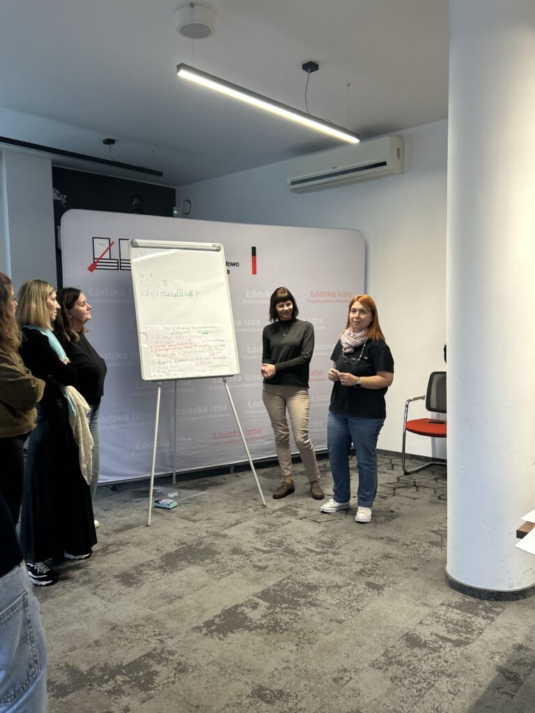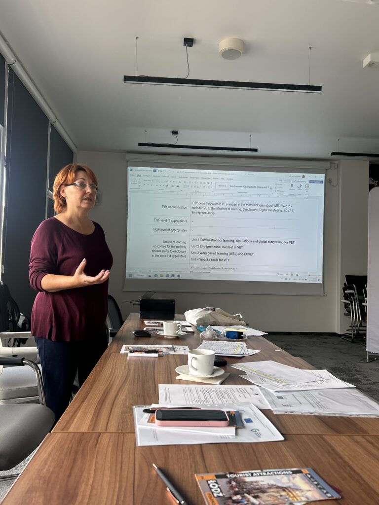 Por fim, podemos/devemos levar os nossos guias à mão ou num tablet para testar, em todas as línguas parceiras, se podemos apresentá-los dessa forma ao nosso público-alvo em eventos de divulgação. O nosso workshop é uma atividade de formação organizada pelo nosso parceiro, a Câmara de Comércio e Indústria de Lodz, na Polónia, para melhorar o conteúdo desenvolvido e testar e verificar a integralidade e a qualidade dos módulos e guias do nosso projeto. Uma atividade ECVET com um Memorando de Entendimento e acordos de aprendizagem está também em preparação.