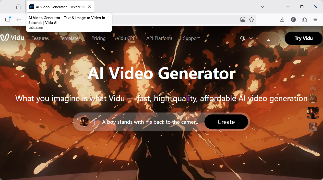 Vidu AI is an AI video generation tool — it can turn text, images, or ideas into videos automatically.